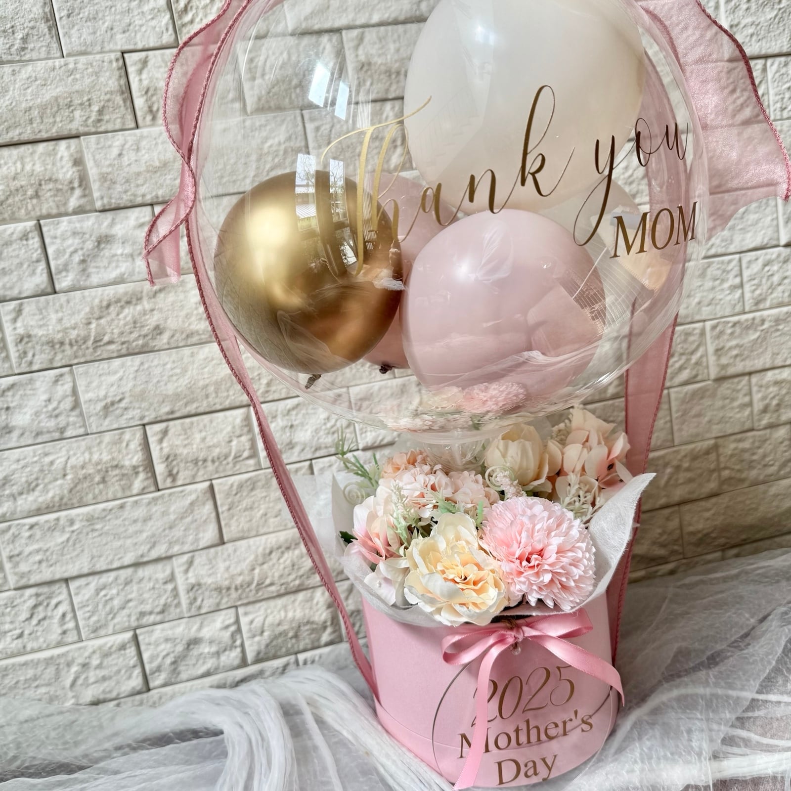 ボリュームあり!新作♥文字入れ無料♥気球型バブルバルーンアレンジ♥