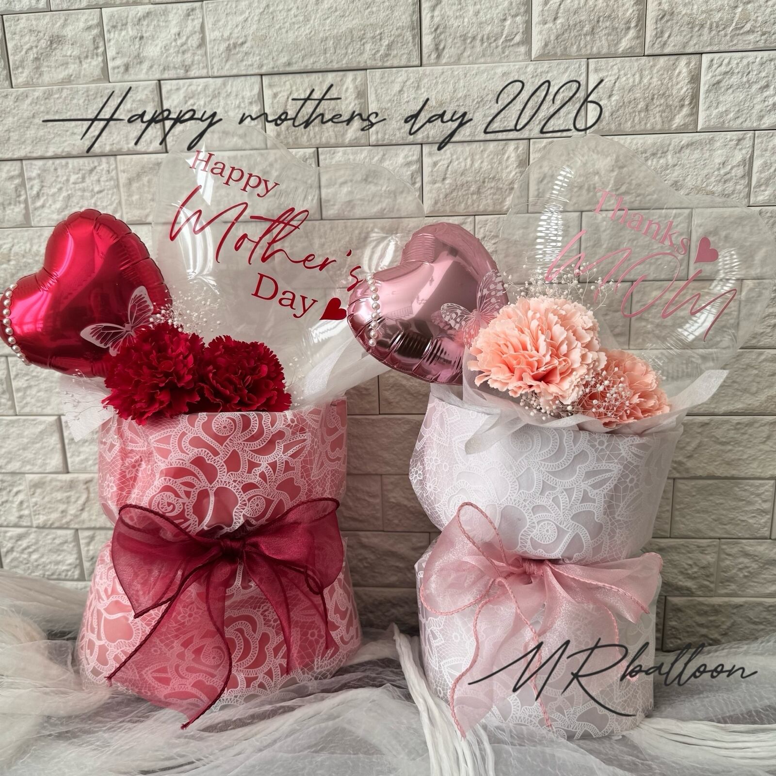 新作♥2026母の日ギフト♥クリアハートバルーンアレンジ(レースラッピング)