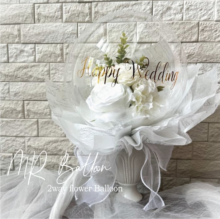 造花がまるっと入ったオシャレで可愛いクリアバルーンブーケ❤︎