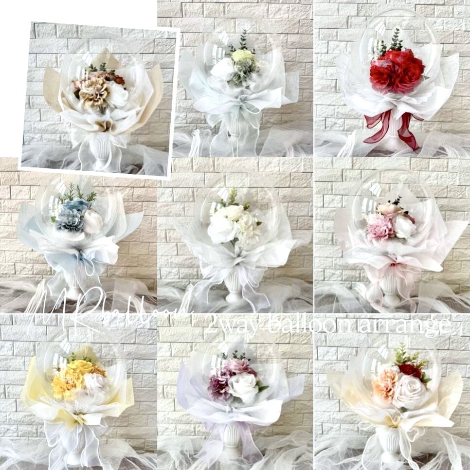 当店はお色指定での制作が基本の為、在庫状況により写真とお花やリボンなどが異なる場合がございます事をご了承下さい。商品は全て検品して、バルーンの空気の漏れがないかチェックしてから発送しております。
