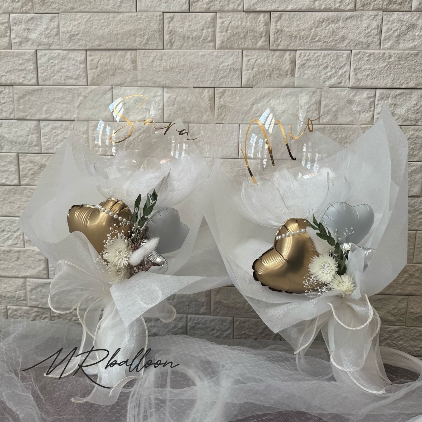 おしゃれなギフト 発表会等にも…カラー選択&文字入れ無料❤︎ ドライフラワー&フェザーバルーン入りバルーンブーケ